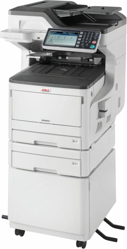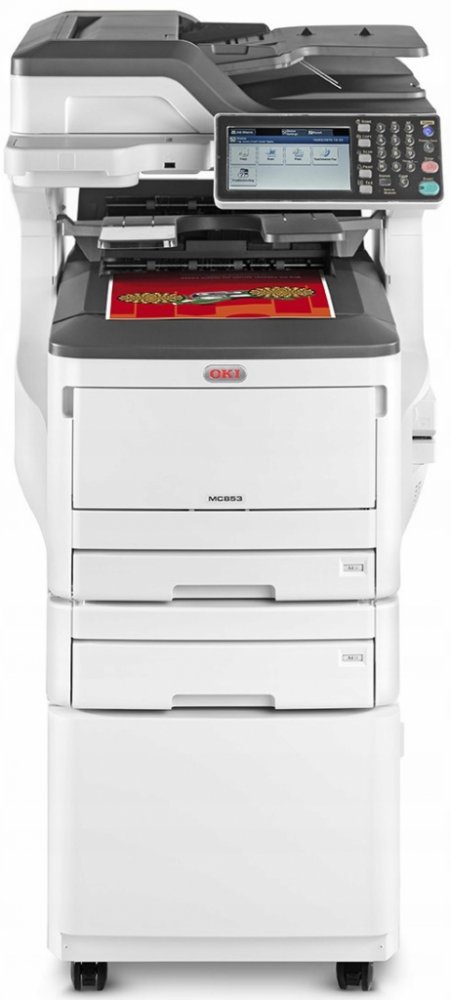 Barevná multifunkční tiskárna MC853 A3 je perfektní volbou pro malé pracovní skupiny, která nabízí vynikající kvalitu tisku a kopírovací funkce – to vše v kompaktním, ale výkonném zařízení s nízkými celkovými náklady na vlastnictví. Přitom poskytuje všechny funkce, které byste očekávali u zařízení za vyšší cenu. MC853 nabízí bezpečné a intuitivní funkce, které spolu s rychlostí tisku až 23 stránek za minutu, 14 sekund do prvního výtisku, a 14,5 sekundy do první kopie umožňují snadnou a efektivní integraci do jakéhokoliv systému práce s dokumenty. Díky kombinaci spolehlivosti digitální LED technologie tisku společnosti OKI, funkčnosti a výkonem mnohem nákladnějších zařízení, zajistí MC853 vynikající kvalitu tisku a kopírování, stejně jako komplexní skenování a správu vašich dokumentů. Díky snadno použitelnému a plně přizpůsobitelnému rozhraní na 7" dotykové obrazovce může mít z jejího skvělého výkonu prospěch celá pracovní skupina. Platforma společnosti OKI smart Extendable Platform (sXP) zajistí, že se model MC853 stane srdcem vašeho systému práce s dokumenty. Model MC853 přináší vynikající hodnotu a výkon náročným pracovním skupinám bez kompromisu.