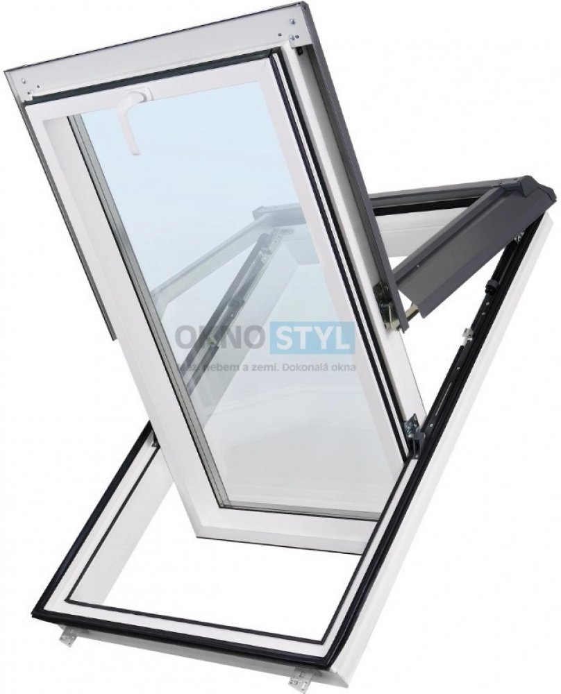 Plastová střešní okna Skyfens SUPRO Triple Termo jsou ve standardu osazena izolačním trojsklem s teplým distančním rámečkem TGI Swisspacer. Díky tomu mají vynikající izolační vlastnosti, jsou vhodné i pro nízkoenergetické budovy. Podle rozměrů dosahuje celkový prostup tepla hodnot od 0,96 ? 1,1 W/m?K. Rámy a křídla tvoří vícekomorový profil vyrobený z bezolovnatého plastu, nereaguje na vlhkost a změny teplot, takže okna jsou vhodná i do koupelny a kuchyně. Uvnitř profilu jsou ocelové výztuhy a samozřejmostí je kvalitní kování. Díky použití plynových pístů se okno snadno otevírá a drží v dané pozici. Na vlnité i ploché střechy Střešní okna SUPRO Triple Termo lze instalovat na střechy s vlnitou i rovnou krytinou, jedinou podmínkou je vhodný sklon ? od 15 do 70 stupňů. Díky rozšířeným drážkám v rámu se snadno napojí těsnící lemování. Použité úhlové profily zvyšují rozsah nastavení instalovaného okna. Upozorňujeme, že součástí okna není těsnící lemování, je nutné ho objednat zvlášť. Střešní plastová okna SUPRO Triple Termo v kostce:Vynikající tepelná izolace, Uw od 0,96 ? 1,1 W/m?K.Hranatý vícekomorový profil (3 komory v rámu, 5 komor v křídle) s ocelovými výztuhami, uvnitř je stříbrná zasklívací lišta. Tvrzené izolační trojsklo Ug= 0,5 W/m?K. Propustnost světla 74 %.Akustická izolace 32 dB. Zvýšená osa otáčení (otevírání ve ?, díky čemuž lépe z okna uvidíte). Každých 20 mm jsou dvě polohy mikroventilace.Použití pro střechy se sklonem 15 až 70 stupňů, plochá i vlnitá.Inovativní systém odvodnění řeší problém odvodu případného kondenzátu ze žlábku na spodní hraně křídla.Nový rámový závěs zvyšuje bezpečnost používání a životnost střešního okna.