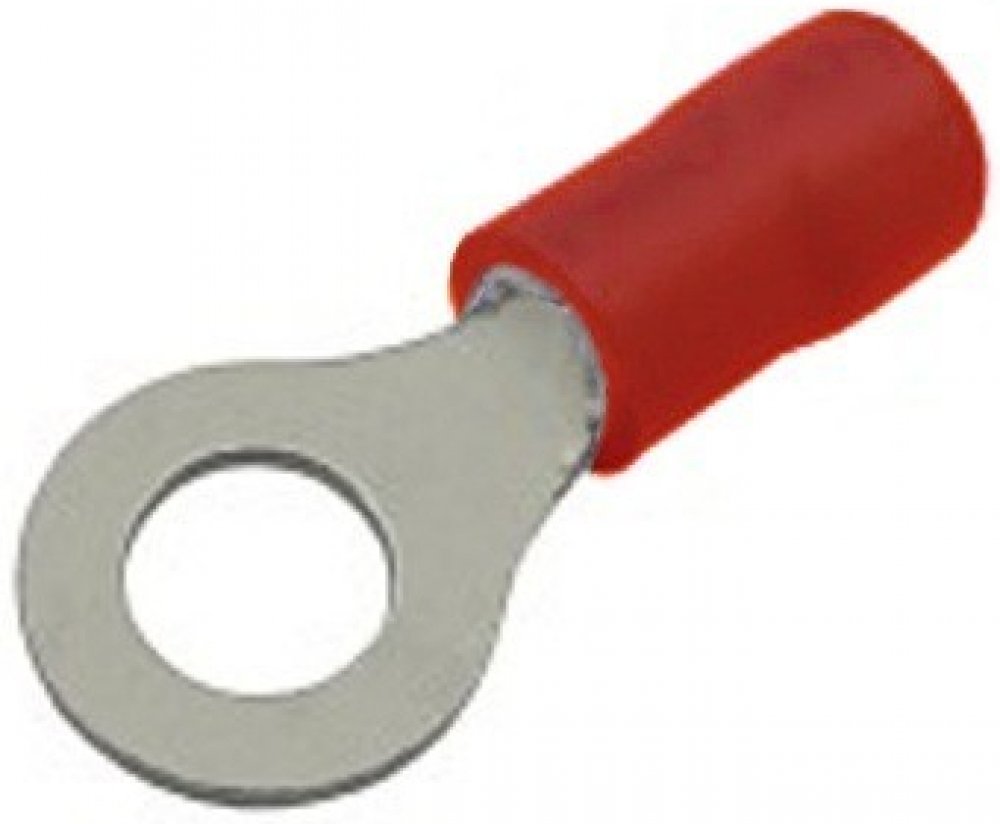 Červené kabelové očko GPH RF-M6 k zakončení kabelů, pro průřez 0,5 - 1,5 mm2, svorník M6. Do konektoru faston očka vložíme oholený vodič a pomocí Faston kleští spojku secvakneme.