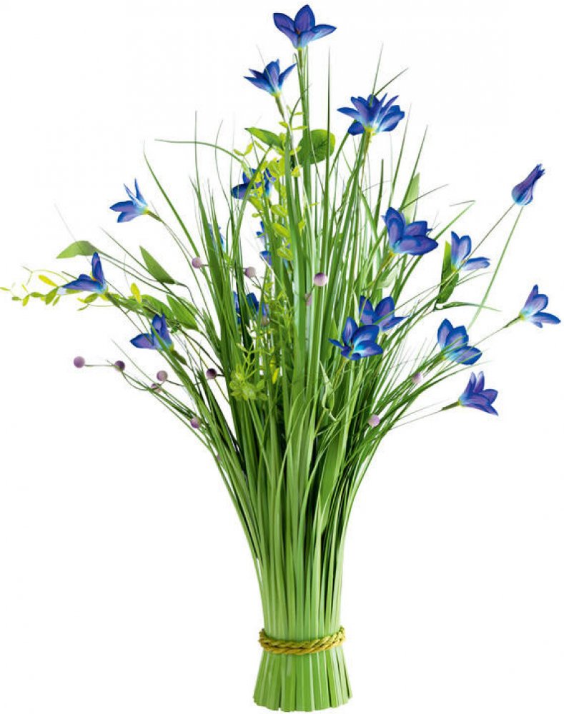 Velký stojací svazek umělé trávy s něžnými modrými kvítky a drobnými lístky je na první pohled téměř k nerozeznání od živých rostlin. Do vašeho domova vnese stálou připomínku na barevné léto a nikdy neuvadne. Tento originální dekorační doplněk vašeho domova vynikne kdekoli v interiéru, oblíbený je v koupelně, rozzáří chodbu, ozdobí také terasu či balkon. Rozměry: v. 70 cm Materiál: textilie, pla...