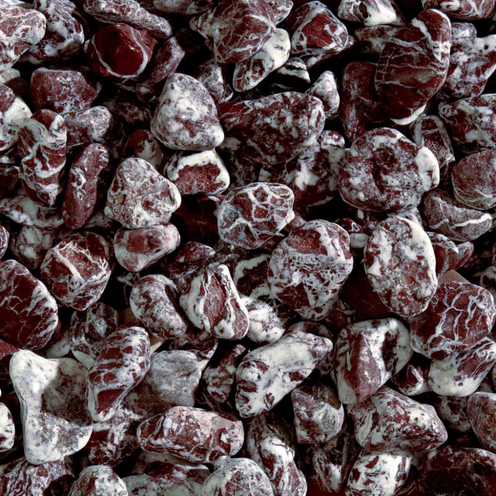 Okrasné mramorové valounky, odstín vínově žíhaný, vhodné pro použití v interiéru i v exteriéru, plně mrazuvzdorné, pochozí i pojezdové ( možnost dodání fixačního roštu ). Velmi vhodné pro dekorační účely - zahrady,hrobová místa, možnost použití: akvária, terária atd.
