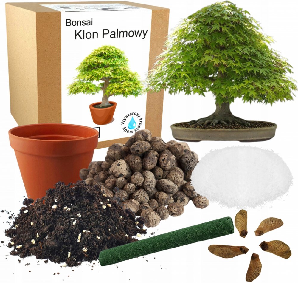 Naše sada obsahuje vše, co potřebujete k zahájení pěstování palmového javoru jako bonsaje. Sada obsahuje květináč o průměru 13 cm, 5 semen Javoru palmového, 1 litr pečlivě vybrané směsi zeminy s mikroelementy, perlit, hydrogel, keramzit a hnojivou tyčinku. Navíc podrobný návod na pěstování pomůže i začínajícím zahradníkům vychutnat si krásný stromek. Elegantní balení dělá z tohoto setu také ideální dárek.