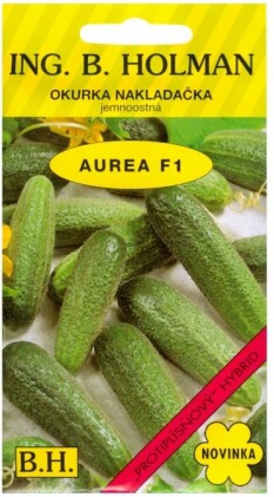 AUREA F1 je relativně silně vzrůstná. List je menší, světleji zelený, hodně špičatý. Rostlina je geneticky nehořká, převážně samičího typu, výskyt „jalových“ květů je velmi malý. Plod je štíhlý, poměr délky a k šířce 3 : 1, tupě zakončený, hladký, osten bílý jemný.