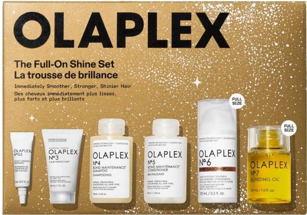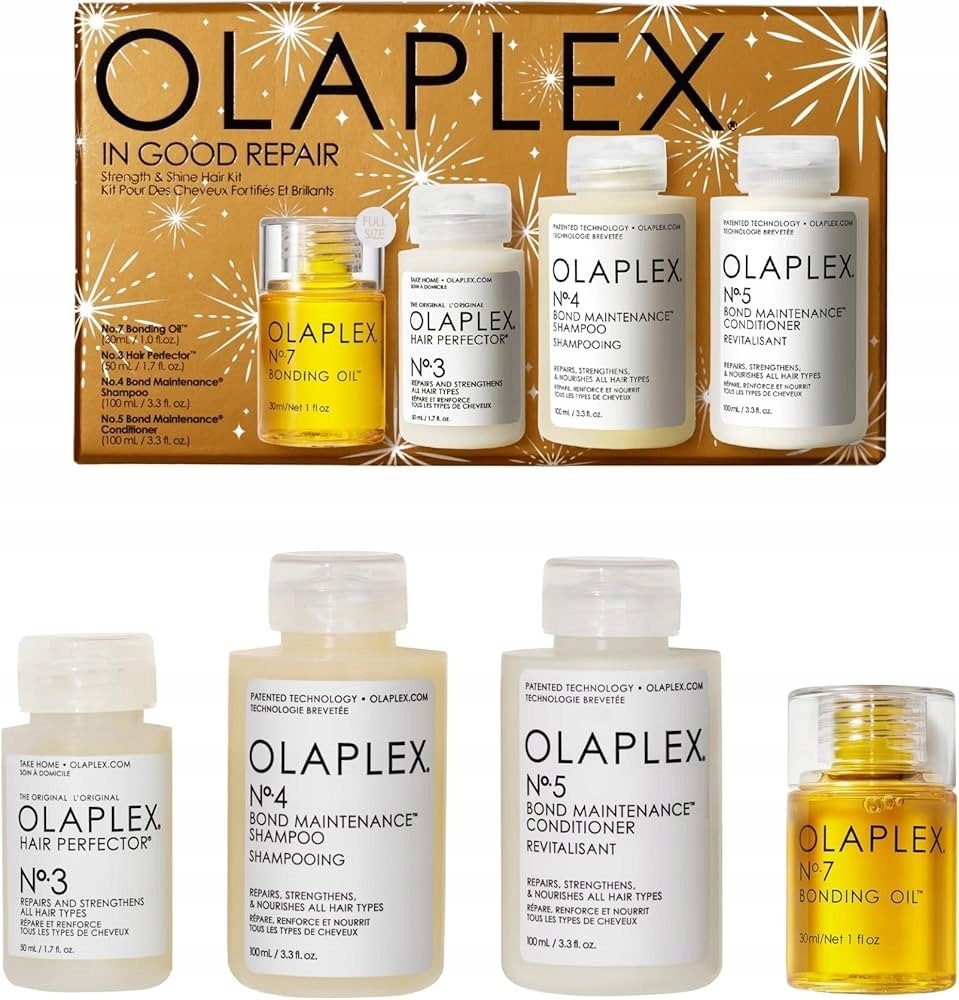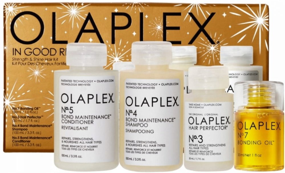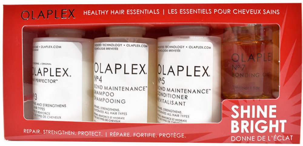 Limitovaná sada obsahující výrobky olaplex pro regeneracia lesk vlasů.