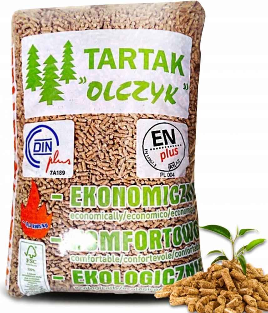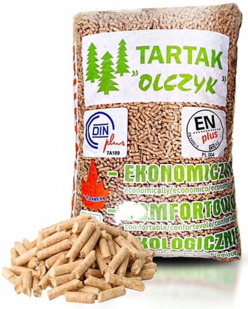 Dřevěné pelety Olczyk jsou moderní, ekologické palivové palivo vyrobené ze 100 % čistého jehličnatého dřeva – borovice, modřínu, jedle a smrku. Vyrábí se z vysokotlakých lisovaných pilin bez přidání chemických lepidel. Díky koroze je surovina bez kůry a minerálních nečistot, což zaručuje nízký obsah popela a bezporuchový provoz kotle CO. Pelety Olczyk mají certifikáty DINplus a ENplus A1, což potvrzuje jejich nejvyšší kvalitu a shodu s evropskými normami.