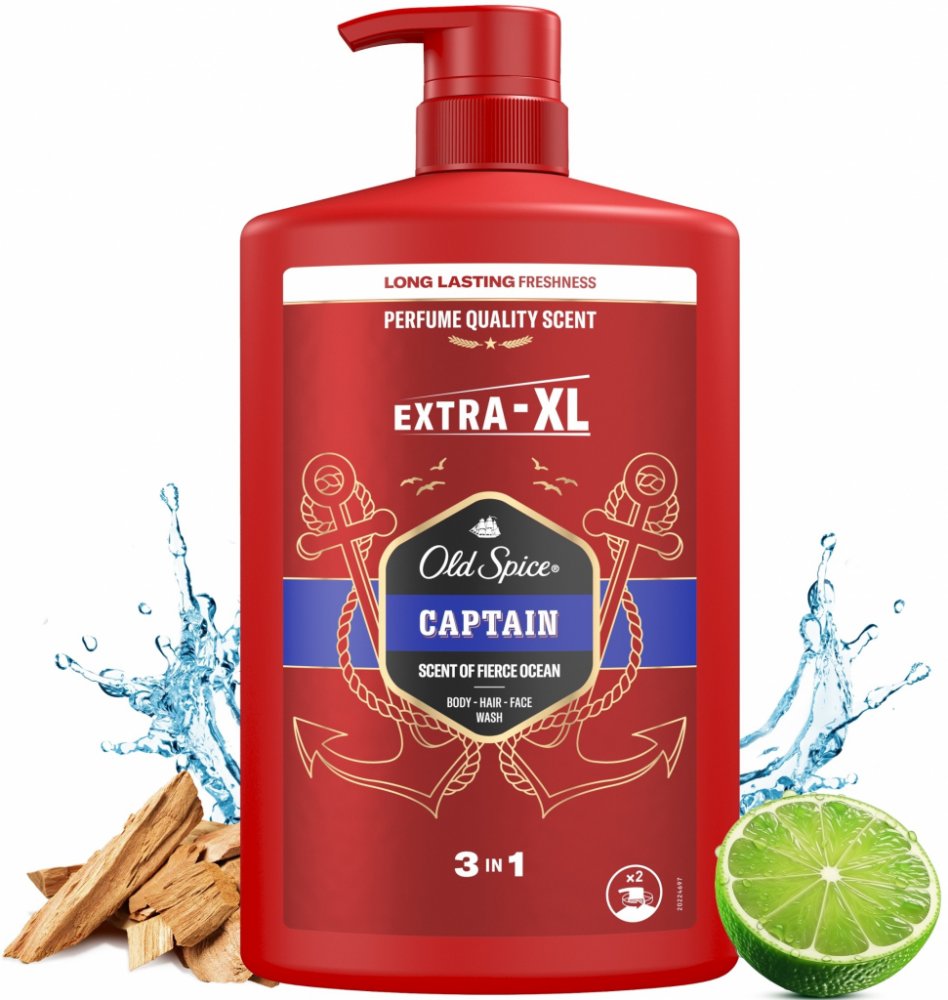 Old Spice Captain Sprchový gel a šampon pro muže 3v1 má velmi svěží vůni. Vytváří osvěžující pěnu, která se vypořádá se špínou a zápachem. Vhodné pro použití na tělo, vlasy i obličej.