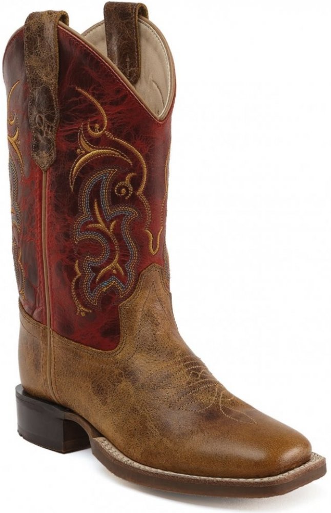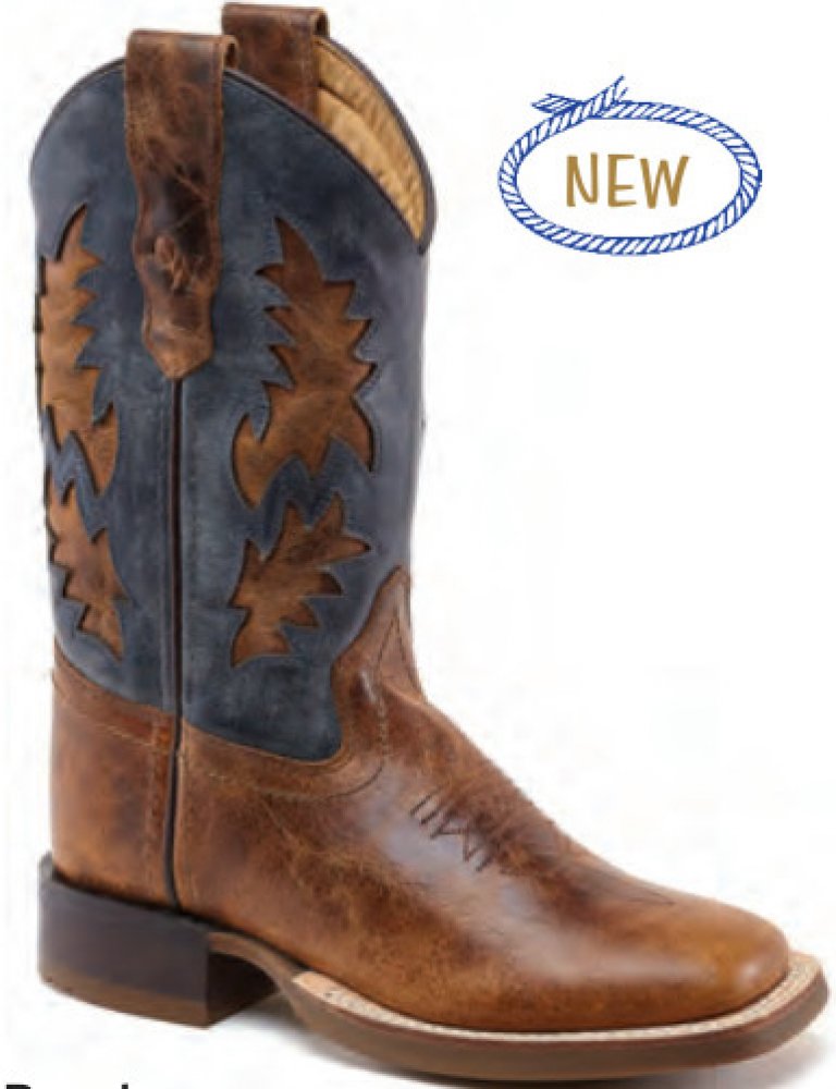 Kožené westernové boty s ozdobným prošitím a hranatou špičkou.