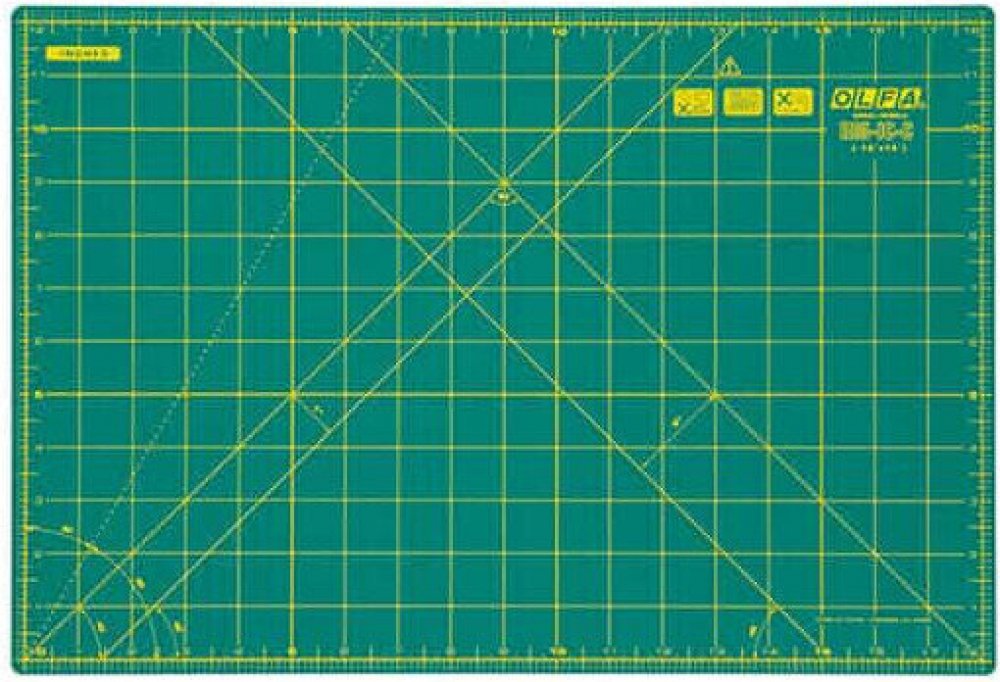 Oboustranné třívrstvé podložky OLFA se samoregeneračním povrchem a tloušťkou 1,6 mm. Podložky disponují oboustranným povrchem s tmavozelenou základní barvou a žlutou metrickou mřížkou na jedné straně, a palcovou mřížkou na druhé straně. Mřížkové čáry jsou určeny pro snadné měření a na přesné řezání přímých čar a přesných úhlů.