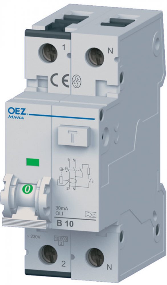 In 6 A, Ue AC 230 V, charakteristika B, Idn 30 mA, 1+N-pól, Icn 10 kA, typ A Přístroj je kombinací proudového chrániče a jističe. Pro domovní, komerční a průmyslové elektrické rozvody do 40 A, 230 V a.c. Pro ochranu: – před nebezpečným dotykem živých částí (I?n ? 30 mA) – před nebezpečným dotykem neživých částí – před vznikem požáru – před přetížením – před zkratem (vypínací schopnost Icn = 10 kA)...