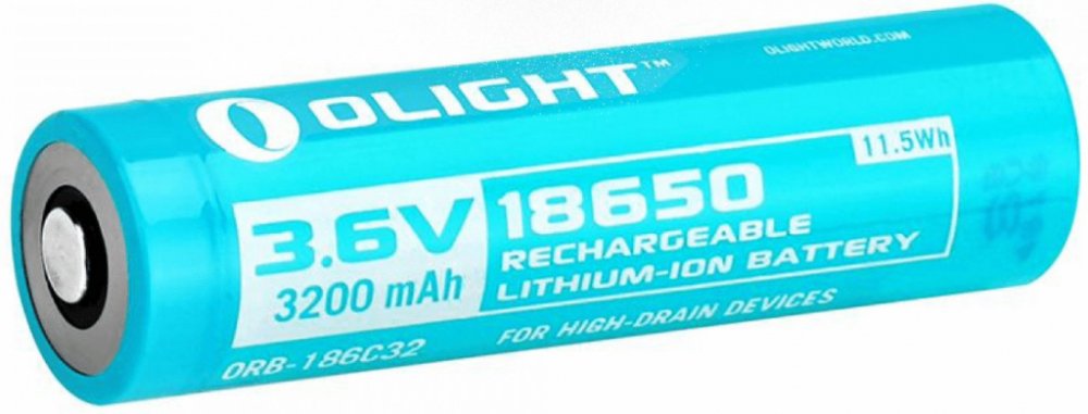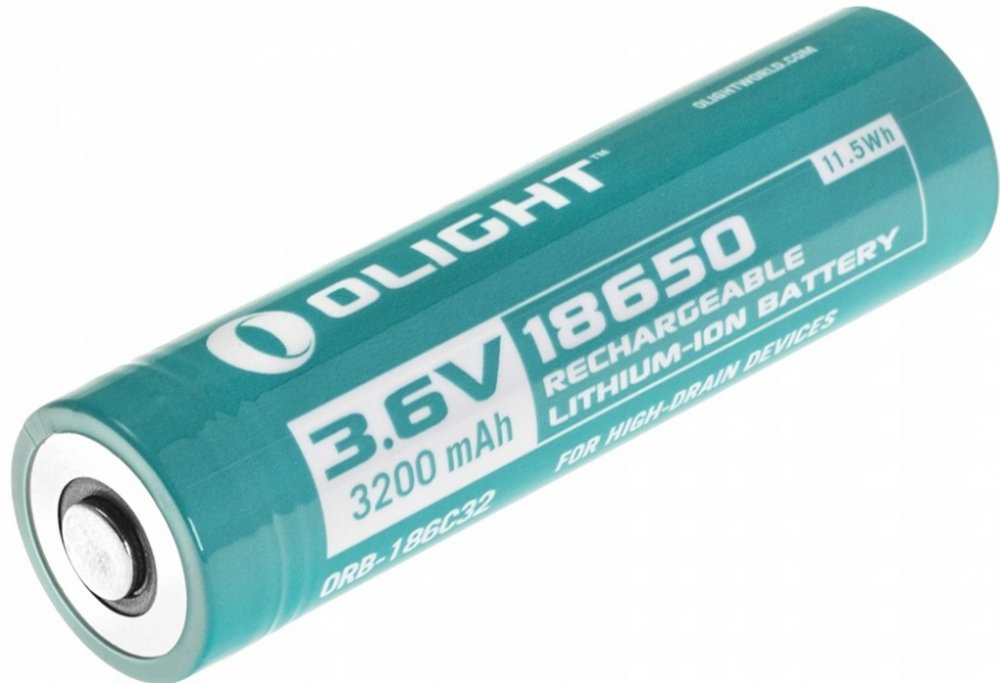 Nabíjecí Li-Ion baterie Olight 3.6V 3200 mAh 18650 je speciálně navržena pro svítilny S30R II, S2R a S2R II.