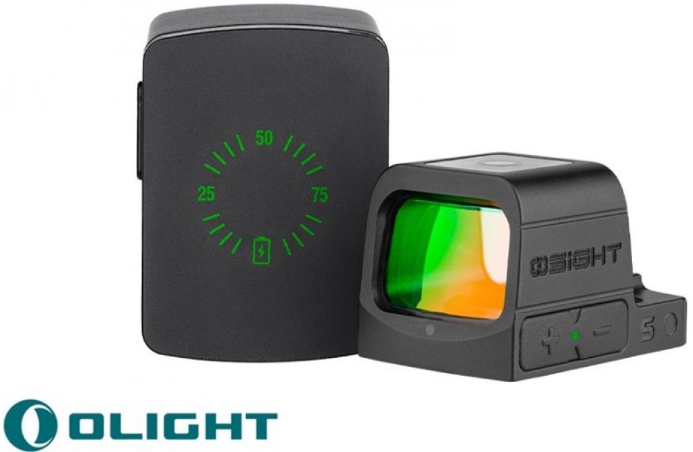 Kolimátor je vybaven integrovanou dobíjecí baterií, která se nabíjí pomocí magnetického nabíjecího systému Olight – bez nutnosti demontáže ze zbraně.