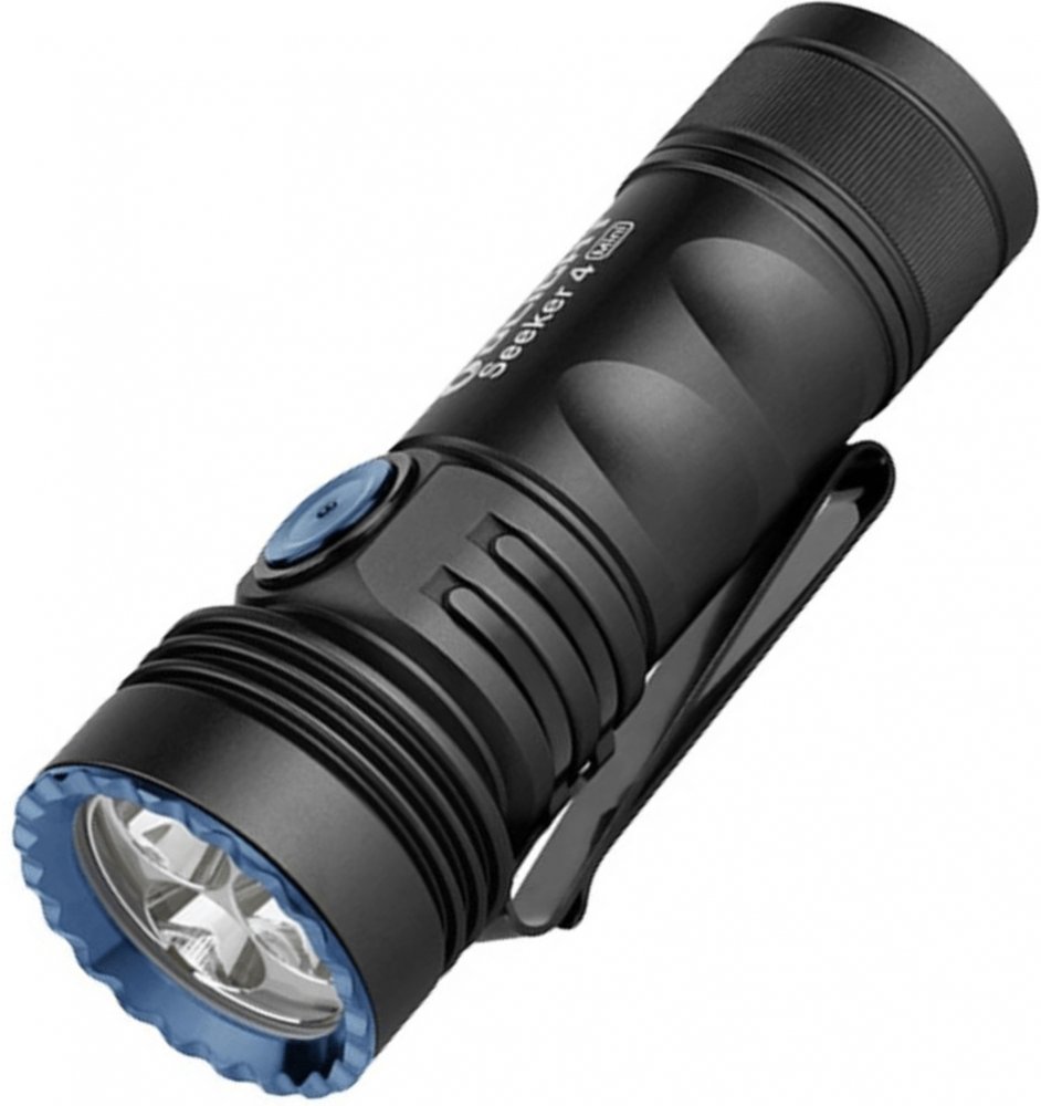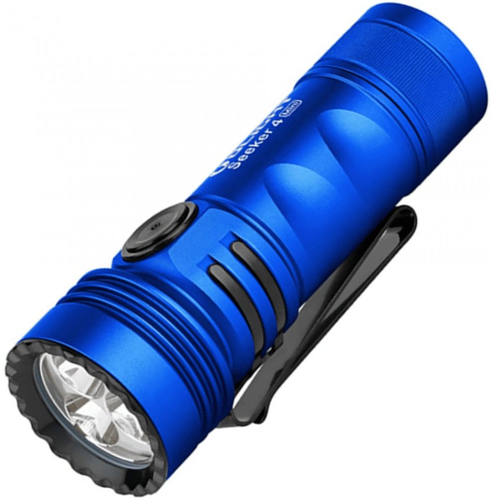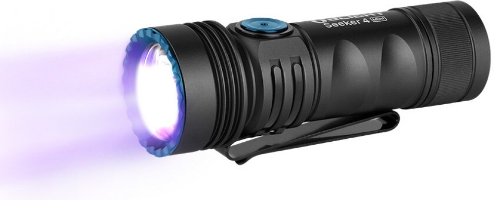 Kompaktní svítilna Olight Seeker 4 Mini Blue s bílým a 365 nm UV světlem (760 mW) je vhodná pro lezení, opravy, detekci fluorescenčních látek, kontrolu čistoty hotelů atd. Díky svému kompaktnímu designu se snadno uloží do malého prostoru nebo zabalí do tašky.
