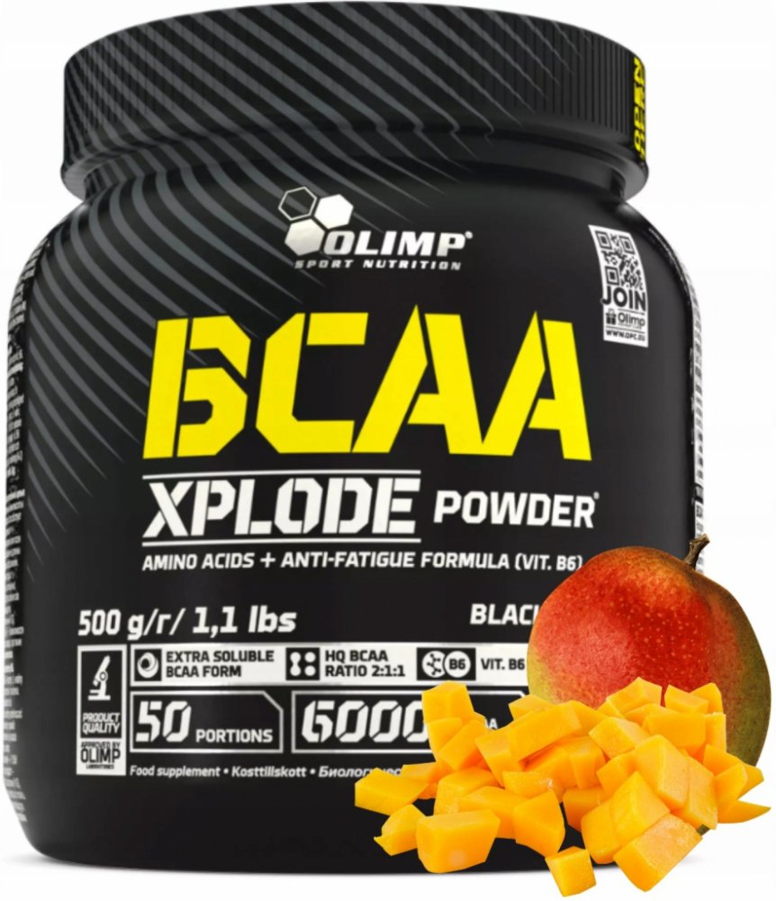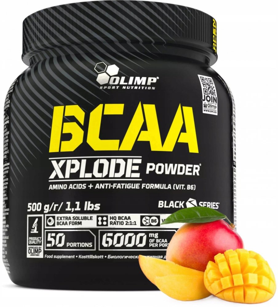 Olimp Laboratories 500 g v prášku s BCAA 4.8 g L-leucin 2 g; L-valin 1 g; L-isoleucin 1 g 4.0 g/porce 4.2 g/porce 78 porcí