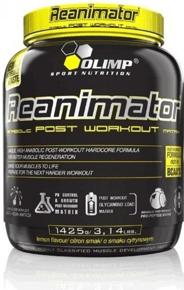 Reanimator je špičkový potréninkový suplement, obsahující volné aminokyseliny, anabolické a anti-katabolické látky, kvalitní proteinové zdroje a sacharidy. Reanimator také napomáhá odkyselení organizmu, regulaci škodlivých metabolitů nebo odstranění volných radikálů vyplívajících z těžkých intenzivních tréninků.