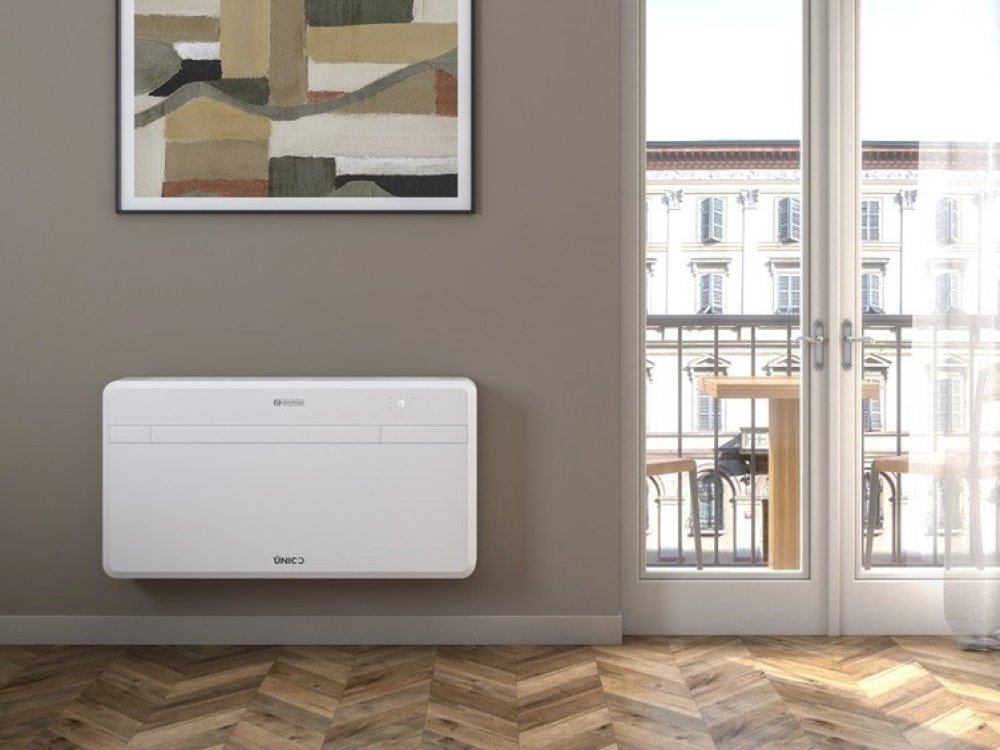 Monobloková klimatizace UNICO NEXT 10 HP Wi-Fi bez venkovní jednotky, je ideálním řešením pro prostory, kde není možné instalovat venkovní jednotku. Tato inovativní klimatizace funguje tak, že nasává vzduch z vnějšího prostředí přes přívod, horký vzduch odvádí přes výfuk a ochlazený vzduch cirkuluje do místnosti. Nástěnné klima UNICO NEXT 10 HP Wi-Fi vyniká elegantním designem, jehož šířka je pouhých 18 cm. Jednotka je také vybavena pokročilým systémem čištění vzduchu, který kombinuje elektrostatické a uhlíkové filtry. Nejnovější model je navíc vybaven funkcí ECO, která zvyšuje výkon zařízení a zároveň snižuje spotřebu energie. Invertorový systém: Tato jednotka využívá špičkovou invertorovou technologii a může se pochlubit až o 30% vyšší energetickou účinností v porovnání s tradičními systémy. Nejtišší monobloková jednotka: Tato jednotka pracuje s hlučností pouhých 26 dB v režimu chlazení a zajišťuje nerušivý provoz. Tenký design: Navzdory svým výkonným schopnostem je série UNICO umístěna v elegantním plastovém krytu, které je tenké pouhých 18 cm. Modul Wi-Fi: Díky vestavěnému modulu Wi-Fi lze tuto klimatizaci snadno ovládat pomocí mobilního telefonu nebo tabletu pro větší pohodlí. Tepelné čerpadlo: Tato jednotka je vybavena tepelným čerpadlem a umožňuje efektivně vytápět váš prostor na požadovanou teplotu. Vlastnosti: Synchronizovaný dvojitý rotační kompresor – vybavený nejmodernější elektronikou a inovativním čerpadlem kondenzátu, což vede ke snížení hluku až o 15 dB v porovnání s předchozími modely. Technologie INVERTOR umožňuje přesnou regulaci otáček kompresoru, což vede ke zvýšení účinnosti, efektivnosti a úspoře nákladů. Jednotka je také vybavena velkou vzduchovou klapkou pro rovnoměrnou distribuci vzduchu v místnosti. Umožňuje bez problémů integrovat do systému řízení budovy (BMS) pomocí protokolu Modbus RTU. Klimatizace se vyrábí v závodě v Itálii, která používá 100% obnovitelnou energii. Ekologické chladivo R290. Technické parametry: Energetická třída chlazení: A Energetická třída vytápění: A Chladící výkon: 2,1 kW (10000 BTU/h) Tepelný výkon: 1,7 kW Průtok vzduchu: 380 m3/h Příkon chlazení max.: 800 W Příkon vytápění max.: 500 W Stupně ventilátoru: 3 Hlučnost - vnitřní díl: 26 dB Hlučnost max. - vnitřní díl: 40 dB Použité chladivo: R290 Průměr otvoru do zdi: 20,2 cm Vnitřní rozměry (v x š x h): 54 x 101,5 x 18 cm Hmotnost- vnitřní díl: 41 kg Bezpečnostní informace a upozornění naleznete v návodu.