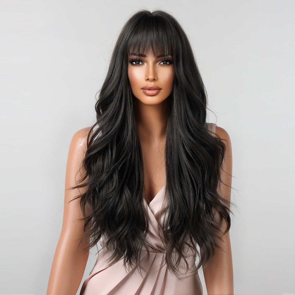 Dlouhá havraní černá paruka Olina s ofinou