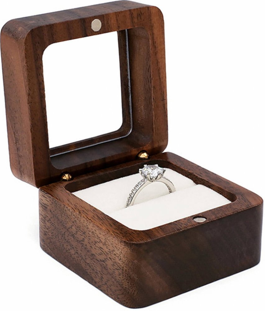 OLIVIE Dřevěná krabička na prsten ořech 7535