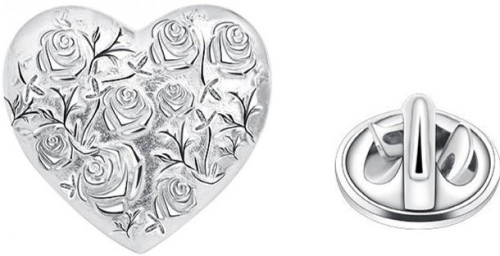 Luxusní brož do klopy saka SRDCE zdobené růžemi.