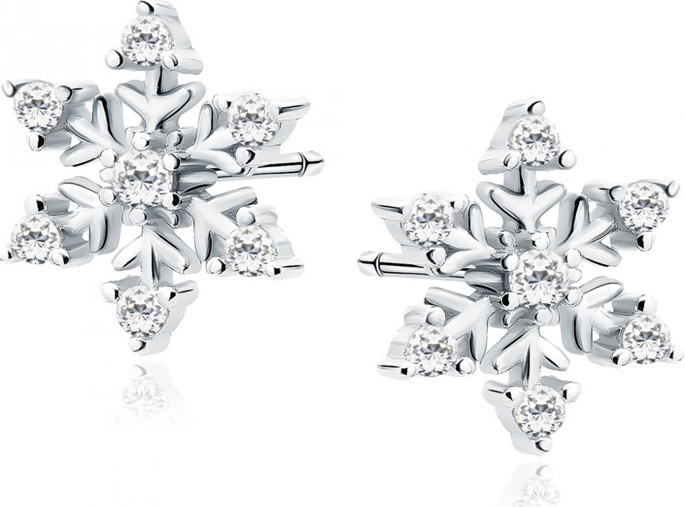 Krásné stříbrné náušnice SNĚHOVÁ VLOČKA s čirými zirkony