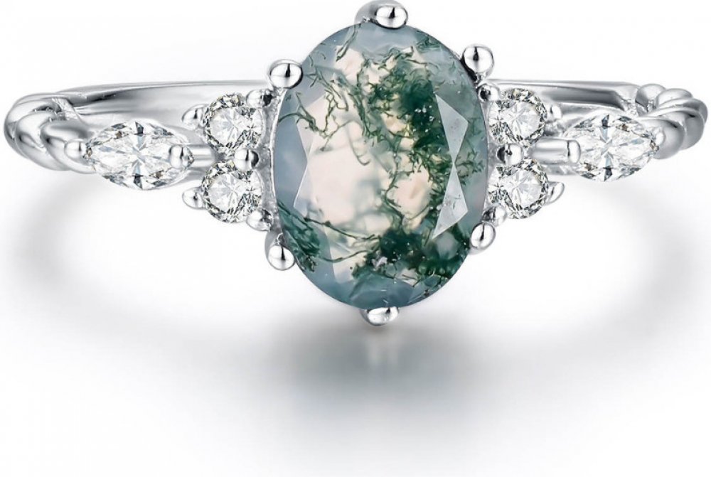 STŘÍBRNÝ PRSTEN MECHOVÝ ACHÁT