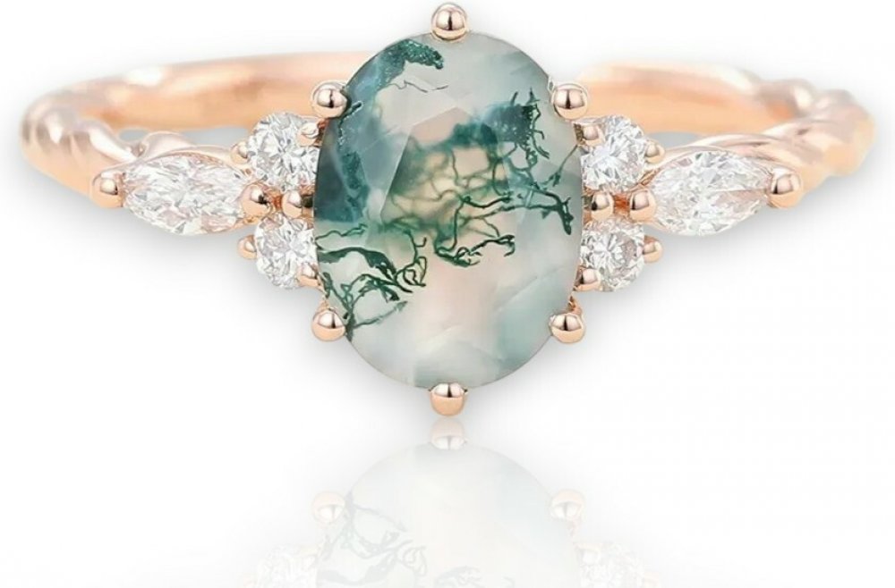 STŘÍBRNÝ PRSTEN MECHOVÝ ACHÁT ROSE