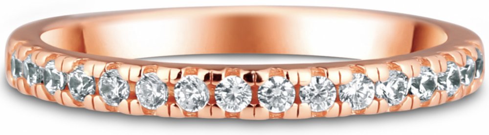 Jemný, ale pevný prstýnek o šířce 2 mm s čirými zirkony až do poloviny prstýnku.
