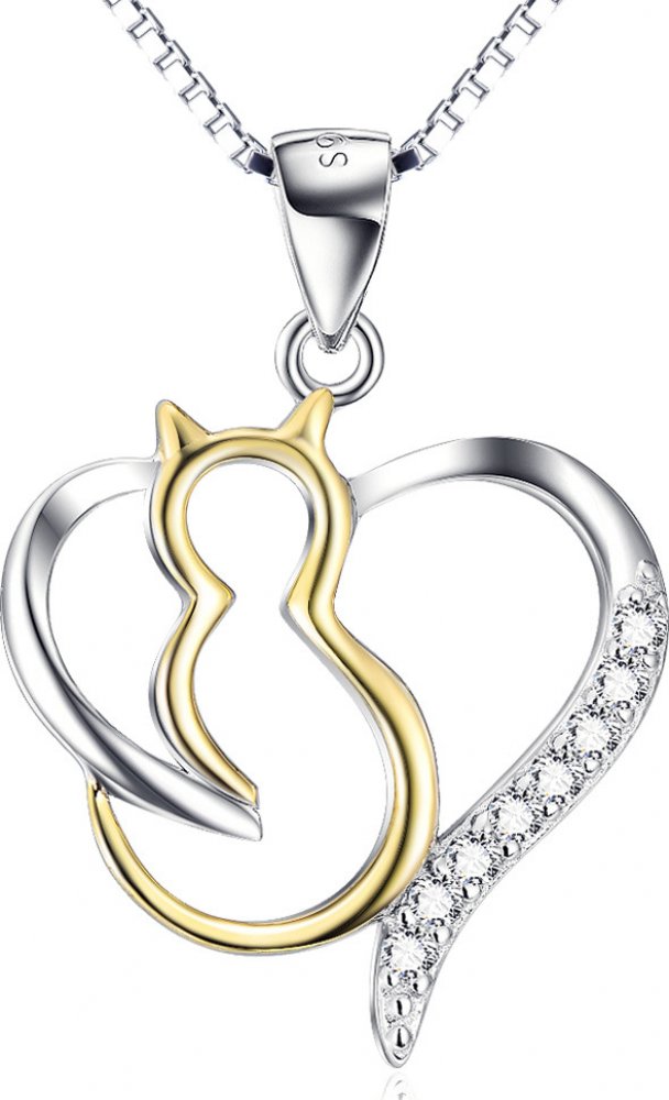 STŘÍBRNÝ NÁHRDELNÍK ZLATÁ KOČKA V SRDCI
