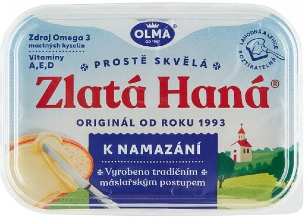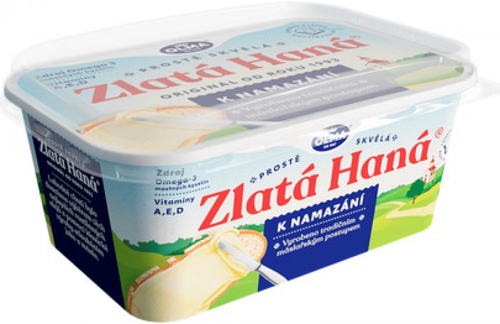 Klasické čisté chuti oblíbeného výrobku bylo dosaženo osvědčenou výrobou stloukáním směsi mléka a rostlinného tuku. Výrobek je tvořen směsí rostlinných olejů a díky tomu se Zlatá Haná k namazání velmi dobře roztírá. Rostlinný tuk je tvořen směsí palmového, řepkového, kokosového a bambuckého oleje, který je namíchán tak, aby v ústech co nejvíce připomínal tu...