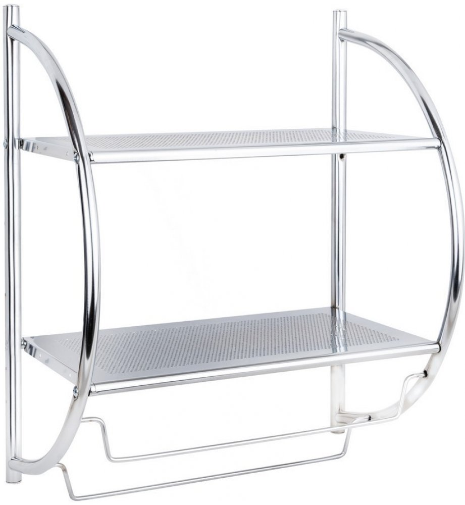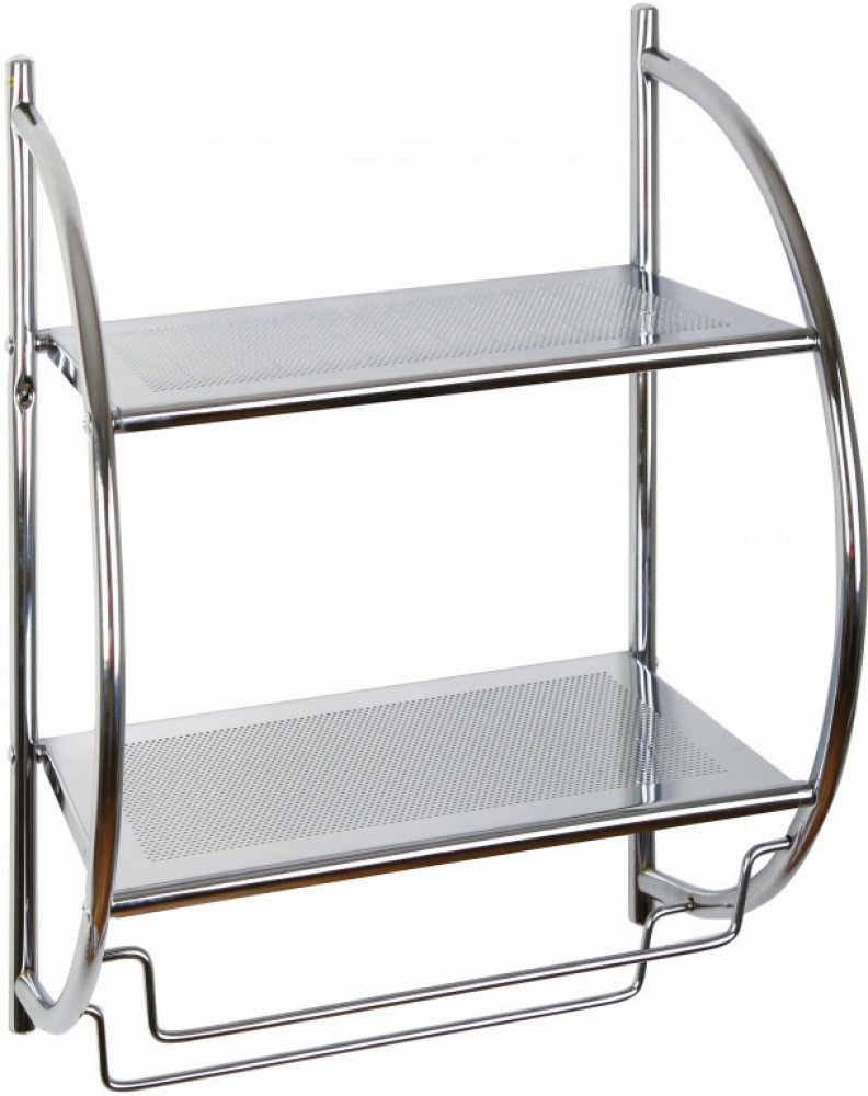 Moderně vypadající kovová pochromovaná polička je vyrobena z prvotřídního materiálu, který je opatřen chromovou povrchovou úpravou. Ta zajišťuje vysokou odolnost vůči poškození a korozi. Poličku tvoří dvě praktické poličky a dva věšáky pro ručníky. Informace k produktu:Rozměry (V x Š x H): 54 x 44 x 26 cmMateriál: pochromovaný kov