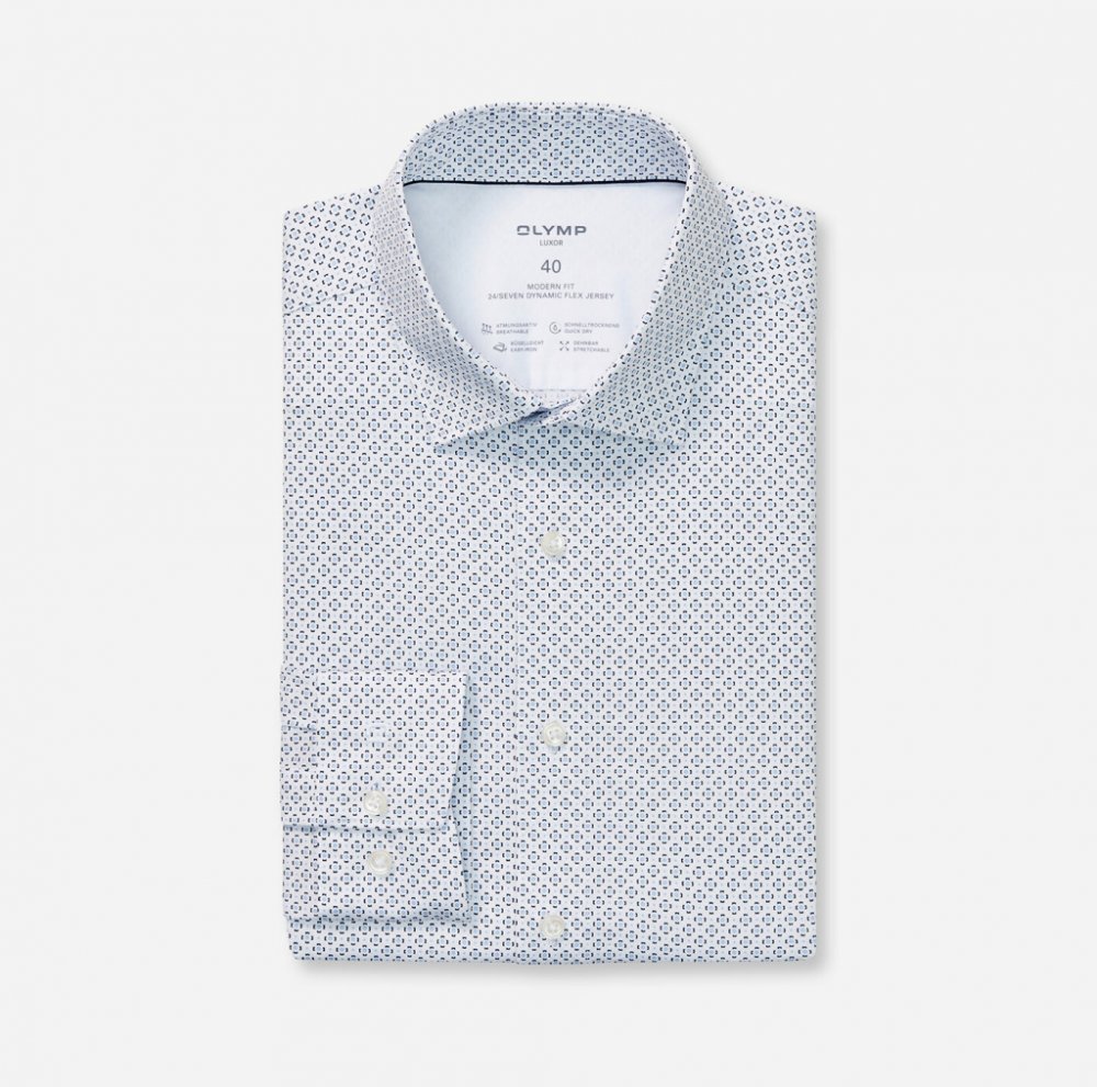 Okouzlující, sportovní a ležérní: tak vypadá moderní obchodní vystoupení. A přesně tak se prezentuje tato žerzejová košile OLYMP Luxor Dynamic Flex. Měkká tkanina z bavlny a elastanu je prodyšná, rychleschnoucí, pružná a snadno se žehlí. Decentní potisk, elegantní límec New Kent, sebevědomé nošení s kravatou i bez ní. materiál 92% bavlna/ 8% elastan.