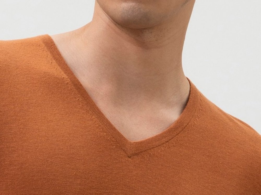 Svetry Olymp z Merino vlny - obecné informace Základní charakteristika Svetry Olymp jsou ve skutečnosti svetry legendární Mnichovské značky März, kterou Olymp zakoupil v roce 2010. Značka März byla založena už roce 1920 a po celou dobu své existence se orientovala na pletené zboží nejvyšší kvality. Nakupuje výhradně ty nejkvalitnější tkaniny a výrobě svetrů věnuje takovou péči, jaká se dnes už téměř nevidí. To zahrnuje opakovanou kontrolu na místech produkce vlny a bavlny u svých dodavatelů, ruční stříhání každého jednotlivého svetru pro dosažení maximální tvarové stálosti nebo několikanásobnou kontrolu příze a vyráběného svetru rámci výrobního procesu. Svetry März a Olymp se od sebe odlišují pouze jiným značkovým odlišením (logem) a barevným provedením tak, aby svetry Olymp co nejlépe pasovaly ke košilím Olymp. Kvalita je základ výrobků Olymp Svetry Olymp se vyrábí výhradně nejkvalitnější vlny Merino, která je odolná a trvanlivá a zajistí pocit tepla i při velmi tenkém a lehkém materiálu. Svetr může proto být skutečně velmi tenký a velmi příjemně se nosí. Svetry Olymp (März) se vyrábí ručně Maďarsku a každý kus se stříhá ručně. Proto svetr perfektně sedí a drží dlouhodobě svůj tvar. Svetry Olymp (März) vlny Merino obsahují také o 10% - 15% více vlny než jiné svetry. Výsledkem je plnější a příjemnější materiál a výrazně menší žmolkování O tomto merino svetru Olymp Materiál svetru Materiál tohoto svetru Olymp je vyroben z kombinace nejkvalitnější vlny merino a čistého hedvábí. Poměr obou látek je 85%:15%. Výsledkem je ještě jemnější a příjemnější materiál a jeho vyšší lesk. Objem použité vlny je zvýšený o cca 10% - 15% pro dosažení celistvé a zároveň pružné pleteniny a větší hřejivosti. Správná péče o svetr Svetr Olymp lze prát v pračce v souladu s informacemi uvedenými na vnitřním štítku. Svetr je potřeba sušit v horizontální poloze, aby se pověšením nevyvěsil. Nesušte svetr v sušičce, aby nedošlo k poškození materiálu. Výstřih svetru Výstřih svetru Olymp je ve tvaru písmene V. Střih svetru Tento svetr pochází z řady Level Five a je tudíž v silně zúženém střihu (označení Body Fit). Nosí se hodně přiléhavě na tělo. Střih svetru z řady Body Fit je užší než u standardního svetru (o 6 cm až 10 cm) a je tedy vhodný pro štíhlé muže a dále pro muže, kteří mají větší postavu, ale nechtějí nosit běžný volný svetr, jaký by odpovídal jejich velikosti. Délka rukávu a svetru. Svetr Level Five je delší (o 1 cm) a má také delší rukáv (o 1-1,5 cm) nez standardní svetr Olymp. Je proto vhodný pro muže, kteří jsou nadprůměrně vysocí a nosí prodloužený rukáv košile. Svetr Olymp Level Five bude nejlépe pasovat ke košilím Olymp Level Five s dlouhým a zejména pak prodlouženým rukávem. Konkrétní informace o délce rukávu i svetru jsou uvedeny v tabulce velikostí - ta je zobrazena jako poslední obrázek v pořadí nebo ve spodní části každé stránky v sekci Tabulka velikostí. Barva a provedení svetru Barva svetru je oranžová. Lem svetru, rukávu a výstřihu je elastický.