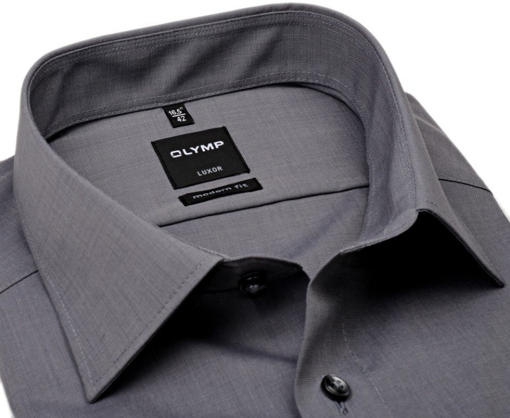 Obecně o košilích Olymp Základní charakteristika Košile Olymp jsou v posledních letech nejrychleji rostoucí značkou košil v Evropě. Firma Olymp byla založena v roce 1951 v Německu rodinou Beznerů a dodnes je rodinným podnikem. To ji umožňuje držet se své filozofie vyrábět špičkové košile a nedělat přitom kompromisy. Kvalita je základ košil Olymp Od svého založení pracuje Olymp s cílem vyrábět a nabízet kvalitní výrobky, které budou pro ostatní značky příkladem. Košile Olymp se po celou dobu vyznačují vysokým důrazem na kvalitu použitého materiálu, kvalitu zpracování, vynikající komfort při nošení a vynikající poměr mezi cenou a kvalitou. Velký důraz klade Olymp také na módnost svých kolekcí a snaží se určovat módní trendy. Košile Olymp se vyrábějí v Evropě, největší výrobní závod se nachází v Bulharsku. Proč si vybrat košili Olymp Košile Olymp se při nošení nemačkají a po vyprání je není potřeba žehlit. Stačí pouze pověsit na ramínko, zapnout knoflík na límci a ráno je košile připravena v perfektním stavu. Díky vysoce kvalitnímu materiálu a nežehlivé úpravě zůstane košile v perfektním stavu po celý den. Košile Olymp se velmi komfortně nosí a je příjemná na dotek. Špičkový materiál a velmi kvalitní zpracování poznáte na sobě nejen vy sami, ale i vaše okolí. Košile Olymp velmi dobře vypadají a padnou. O této košili Olymp Modern Fit Materiál košile Materiál ze 100% bavlny je v provedení Fil a Fil neboli vlákno na vláknu. To znamená, že osnova (tzv. primární látka) sestává ze dvou i více barevných nití (v tomto případě šedá a šedo-bílá). Tím vznikají velmi zajímavá vzhledové kombinace, což propůjčuje košili na zajímavosti. Materiál košile je nežehlivý. Střih košile Košile je řady Luxor Modern Fit (dříve označovaná jako Slim line) – tj. vyštíhlený, zúžený střih s vybranými boky, který se hodí ke štíhlé až normální postavě. Košile má náprsní kapsičku. Délka rukávu a košile Déka rukávu činí ve všech velikostech 64 cm. (Měří se od ramenního švu po konec manžety.) Délka košile se liší podle velikostí. Konkrétní údaj naleznete v tabulce velikostí - ta je zobrazena jako poslední obrázek v pořadí nebo ve spodní části každé stránky v sekci Tabulka velikostí. Barva a provedení košile Barva košile je tmavší šedá. Tmavě šedý základ látky je protkán jemnou bílou až šedo-bílou nití. To dodává košili osobitý a přitažlivý vzhled. Shrnutí - k čemu se košile hodí Tato košile Olymp je univerzální. Bude se hodit jako společenská košile k obleku, stejně jako volnočasová košile k modrým jeansům. K obleku bude vypadat velmi dobře třeba v kombinaci s tmavě červenou kravatou.