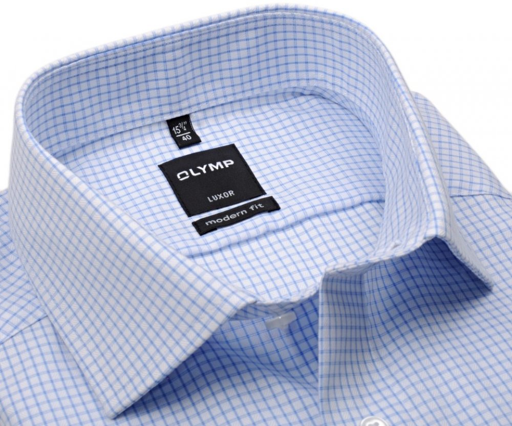 O této košili Olymp Modern Fit Materiál košile Materiál košile Olymp je ze 100% vysoce kvalitní bavlny s jemnou vetkanou strukturou. Materiál je lehký, vzdušný a velmi příjemný na nošení. Košile je nežehlivá (non iron). Střih košile Košile je z řady Luxor Modern Fit (dříve označovaná jako Slim line) – tj. vyštíhlený, zúžený střih s vybranými boky, který se hodí k normální postavě. Límec košile Límec košile je tzv. Kent. Kapsička Košile má náprsní kapsičku. Délka rukávu a košile Déka rukávu činí ve všech velikostech 64 cm. (Měří se od ramenního švu po konec manžety.) Délka košile se liší podle velikostí. Konkrétní údaj naleznete v tabulce velikostí - ta je zobrazena jako poslední obrázek v pořadí nebo ve spodní části každé stránky v sekci Tabulka velikostí. Barva a provedení košile Barva košile je bílá s jemnou světle modrou kostičkou. Ta má dvojité jemné vodorovné i svislé linie. Na košili je vetkaný jemný vzor v bílé barvě ve tvaru navazujících symbolů diamantu. Košile s modrou kostičkou patří obecně k nejoblíbenějším barevným vzorům pánských košil. Bude to ideální společenské košile pro muže, kteří mají rádi tradiční kostičkovaný vzor a prvotřídní materiál. Shrnutí - k čemu se košile hodí Košile je univerzální. Bude nejlépe vypadat jako společenská košile k obleku (ideálně tmavému) stejně jako k samostatným kalhotám. Obecně o košilích Olymp Základní charakteristika Košile Olymp jsou v posledních letech nejrychleji rostoucí značkou košil v Evropě. Firma Olymp byla založena v roce 1951 v Německu rodinou Beznerů a dodnes je rodinným podnikem. To ji umožňuje držet se své filozofie vyrábět špičkové košile a nedělat přitom kompromisy. Kvalita je základ košil Olymp Od svého založení pracuje Olymp s cílem vyrábět a nabízet kvalitní výrobky, které budou pro ostatní značky příkladem. Košile Olymp se po celou dobu vyznačují vysokým důrazem na kvalitu použitého materiálu, kvalitu zpracování, vynikající komfort při nošení a vynikající poměr mezi cenou a kvalitou. Velký důraz klade Olymp také na módnost svých kolekcí a snaží se určovat módní trendy. Košile Olymp se vyrábějí v Asii. Proč si vybrat košili Olymp Košile Olymp se při nošení nemačkají a po vyprání je není potřeba žehlit. Stačí pouze pověsit na ramínko, zapnout knoflík na límci a ráno je košile připravena v perfektním stavu. Díky vysoce kvalitnímu materiálu a nežehlivé úpravě zůstane košile v perfektním stavu po celý den. Košile Olymp se velmi komfortně nosí a je příjemná na dotek. Špičkový materiál a velmi kvalitní zpracování poznáte na sobě nejen vy sami, ale i vaše okolí. Košile Olymp velmi dobře vypadají a padnou.