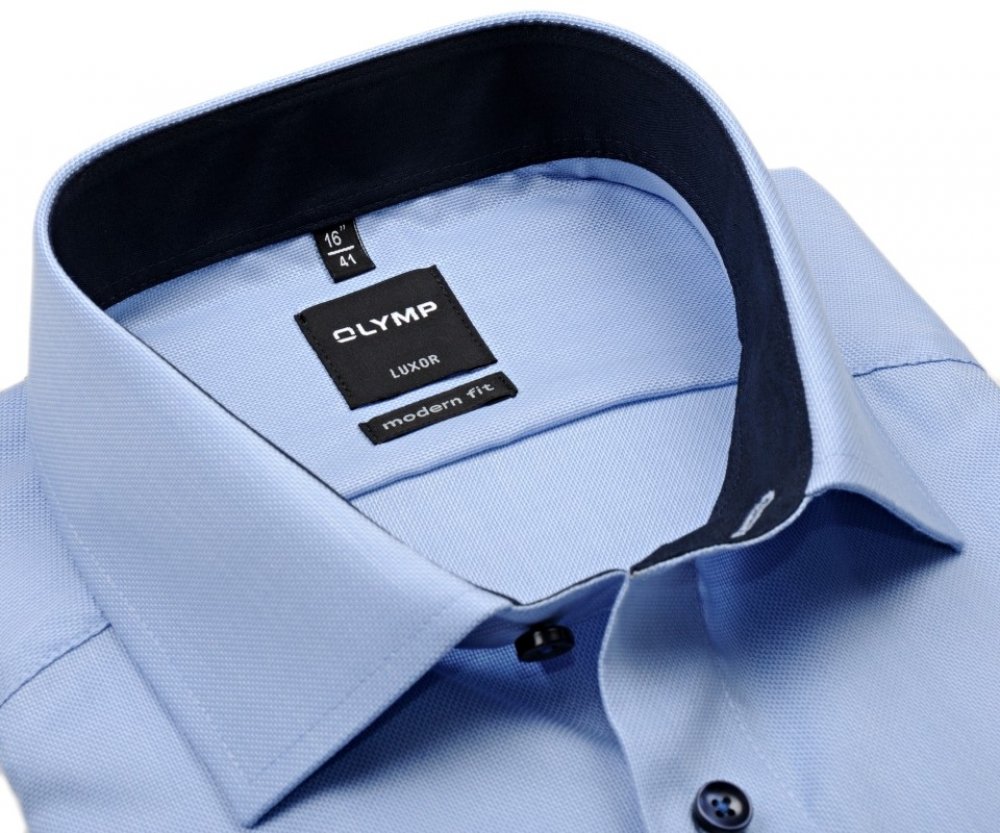 O této košili Olymp Modern Fit Materiál košile Materiál košile Olymp je z 100% bavlny v provedení Natte. Jedná se o velice hezký materiál, kdy jsou příze zapleteny křížově do sebe. Materiál je díky této vazbě příjemně měkký a pružný a také velmi vzdušný a prodyšný. Košile je proto ideální do teplého počasí. Košile je nežehlivá. Střih košile Košile je z řady Luxor Modern Fit (dříve označovaná jako Slim line) – tj. vyštíhlený, zúžený střih s vybranými boky, který se hodí k normální postavě. Límec košile Límec košile je tzv. Kent. Kapsička Košile má náprsní kapsičku. Délka rukávu a košile Košile má krátký rukáv. Délka košile se liší podle velikosti. Konkrétní údaj naleznete v tabulce velikostí - ta je zobrazena jako poslední obrázek v pořadí nebo ve spodní části každé stránky v sekci Tabulka velikostí. Barva a provedení košile Barva košile je světle modrá s bílým rastrováním. To dodává košili na jemném lesku a elegantním charakteru. Košile má tmavomodrý vnitřní límec a manžetu. Celek dotváří tmavomodré knoflíčky v jemném lesku. Košile působí elegantním a zároveň moderním dojmem. Shrnutí - k čemu se košile hodí Košile má krátký rukáv. Nejlépe proto bude vypadat k samostatným kalhotám. Obecně o košilích Olymp Základní charakteristika Košile Olymp jsou v posledních letech nejrychleji rostoucí značkou košil v Evropě. Firma Olymp byla založena v roce 1951 v Německu rodinou Beznerů a dodnes je rodinným podnikem. To ji umožňuje držet se své filozofie vyrábět špičkové košile a nedělat přitom kompromisy. Kvalita je základ košil Olymp Od svého založení pracuje Olymp s cílem vyrábět a nabízet kvalitní výrobky, které budou pro ostatní značky příkladem. Košile Olymp se po celou dobu vyznačují vysokým důrazem na kvalitu použitého materiálu, kvalitu zpracování, vynikající komfort při nošení a vynikající poměr mezi cenou a kvalitou. Velký důraz klade Olymp také na módnost svých kolekcí a snaží se určovat módní trendy. Košile Olymp se vyrábějí v Asii. Proč si vybrat košili Olymp Košile Olymp se při nošení nemačkají a po vyprání je není potřeba žehlit. Stačí pouze pověsit na ramínko, zapnout knoflík na límci a ráno je košile připravena v perfektním stavu. Díky vysoce kvalitnímu materiálu a nežehlivé úpravě zůstane košile v perfektním stavu po celý den. Košile Olymp se velmi komfortně nosí a je příjemná na dotek. Špičkový materiál a velmi kvalitní zpracování poznáte na sobě nejen vy sami, ale i vaše okolí. Košile Olymp velmi dobře vypadají a padnou.
