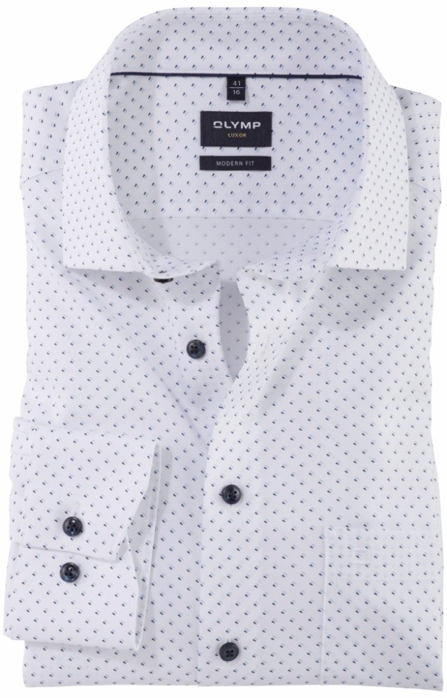 Jemný bavlnený popelín je ideální pro teplejší dny díky lehkému pocitu na pokožce. Okouzlující minimalistický design s elegantním leskem vytvárí individuální vzhled, který dodá závan cerstvého vzduchu každému outfitu. Tato moderní košile OLYMP Luxor má sportovní, priléhavý strih a je zakoncena límeckem Global Kent, který je extrémne moderní límec pro business outfity. Ponekud kompaktnejší než klasická verze a s mírne zkrácenými stopkami límce je tento límec ideální pro kravaty s malými až stredne velký