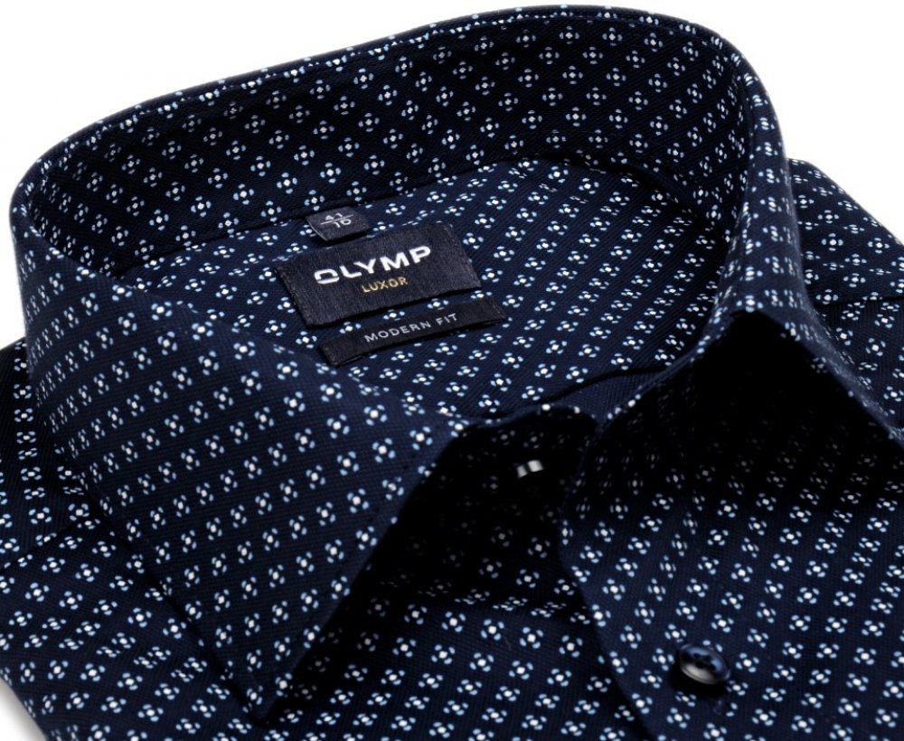 Olymp Modern Fit košile se strukturou a světle-modro-bílým vzorem prodloužený rukáv tmavomodrá