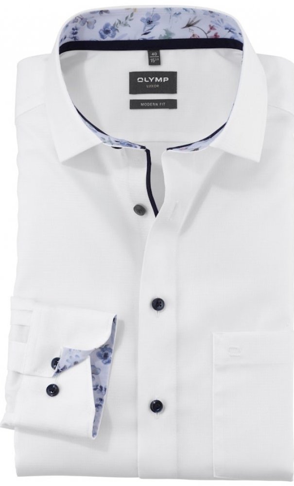 * Olymp pánská společenská košile Modern Fit Luxor* Moderní střih* Límeček Global Kent* Prodyšné a šetrné k pokožce* Italská knoflíková léga* Udržuje svůj tvar* Náprsní kapsa s výšivkou* 100% bavlna