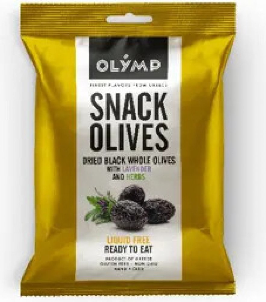 Olymp Sušené černé olivy s levandulí a bylinkami 70 g. Výjimečné sušené černé olivy dochucené jemnou levandulí a aromatickými bylinkami. Speciální sušení zvýrazňuje jejich intenzivní chuť a bohatou texturu. Ideální pro gurmány, kteří hledají netradiční delikatesu. Skvělé samotné nebo jako součást tapas. Výborné k sýrům, vínu a sušeným plodům. Ideální pro ochucení salátů či pečených pokrmů.