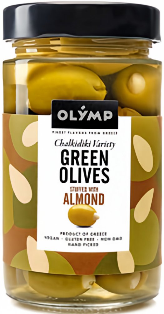Složení produktu OLYMP Olivy zelené s mandlí 320 g: