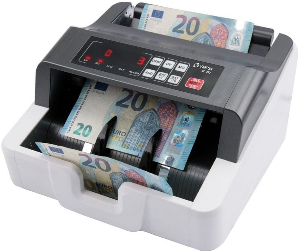 Olympia NC 452 představuje multifunkční počítačku, která nejen počítá kusy bankovek, ale současně dokáže kontrolovat jejich pravost. Počítat s kontrolou pravosti je možné všechny druhy bankovek, které obsahují ultrafialové či magnetické bezpečnostní prvky, zatímco počítat bez kontroly můžete všechny druhy bankovek, některé typy stravenek i vstupenek. Jistě oceníte její jednoduchou obsluhu a použití. Počítačku stačí zapnout, nechat zahřát, nastavit kontrolní senzory a následně vložit bankovky do vstupní přihrádky. Olympia NC 452 poté automaticky spustí počítání. Kromě kontroly bezpečnostních prvků rovněž hlídá rozměry bankovek a díky vestavěnému akumulátoru o kapacitě 2600 mAh ji lze používat i mimo dosah elektrické sítě.Klíčové vlastnosti počítačky bankovek Olympia NC 452Multifunkční počítačka bankovekPočítá kusy bankovek a dokáže kontrolovat také jejich pravostPři kontrole pravosti kontroluje ultrafialové a magnetické bezpečnostní prvkyVelmi jednoduše se používáOlympia NC...