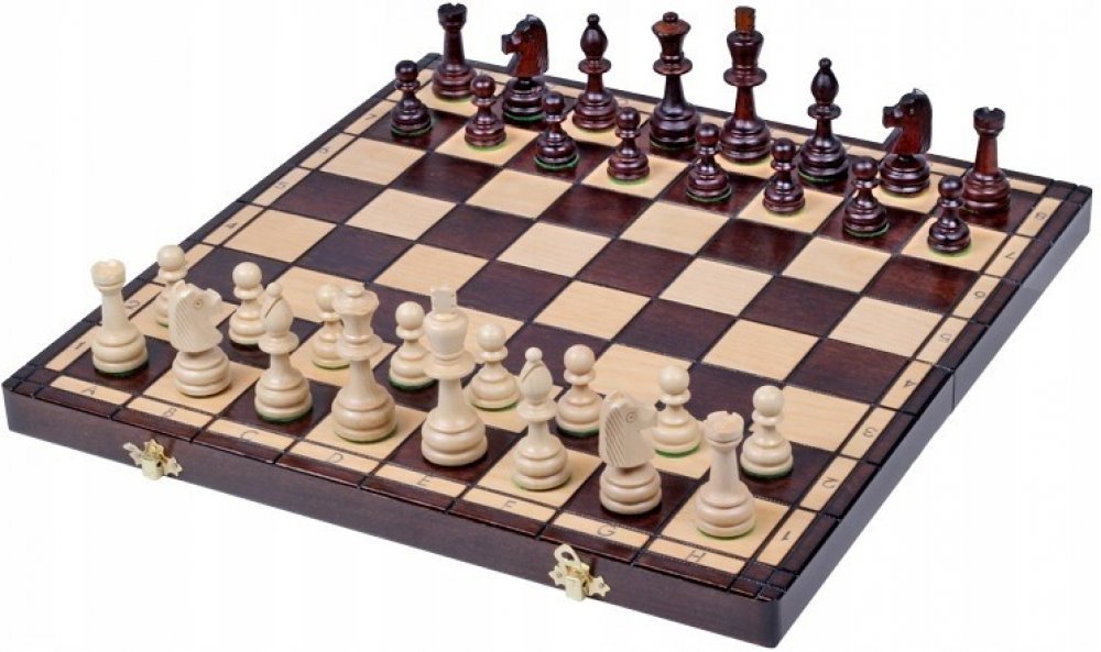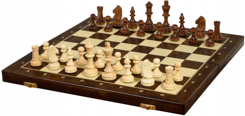 Díky designu (podobně jako Staunton) a velikosti šachových figurek a šachovnice dává mnoho zákazníků přednost této sadě z naší nabídky - turnajová velikost č. 4. Šachové figurky jsou ručně vyráběné a vyrobené z habrového a bukového dřeva. Skládací šachovnice má vložený zásobník pro uložení šachových figurek uvnitř.