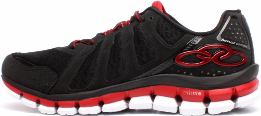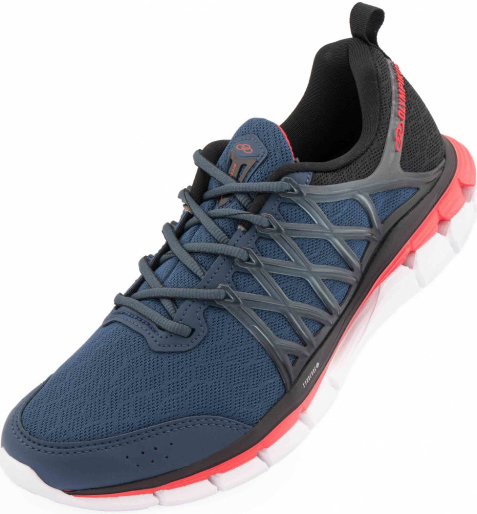 Univerzální sportovní obuv Olympikus se zdvojenou mezipodešví EVA Sense Atraktivně vyhlížející model sportovních bot Olympikus Diffuse Origem je určen pro rozličné sportovní aktivity. Boty jsou vyrobeny z lehkého textilního úpletu husté a výborně prodyšné síťoviny s pevnými segmenty pro výbornou laterární oporu, jež je napojena ke šněrování s plochými tkaničkami, přičemž chybět nesmí ani zadní pozice očka pro uvázání sportovní smyčky, která eliminuje zaškrcení návrtu. Špička boty je opatřena pevnou obsázkou. Velmi dobré tlumení dopadů je zajištěno díky použití speciálně tvarované a širší pěnové mezipodešvi z materiálu EVA Sense o dvou vrstvách. Tato pěna vyniká lepší dynamičností a také odlehčeným provedením. Obecně odlehčení napomáhá také fakt, že materiál mezipodešvi slouží také jako samotná podrážka. Boty tak můžeme doporučit do fitness a dynamická cvičení plná skoků.Materiál: Syntetika, textilie, EVA, TPU Hmotnost: 250 g (EUR 40)