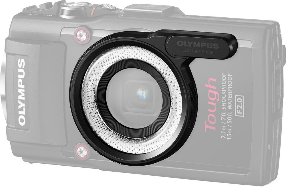 Kruhový světlovod LG‑1 Light Guide značky Olympus zdokonalí vaše snímky. Nejenže rovnoměrně osvětluje makro objekty, ale také eliminuje stín fotoaparátu. Jeho upevnění je rychlé a velmi jednoduché. Vestavěné LED světlo rovnoměrně osvětlí fotografovaný objekt, a umožní tak naplno využít schopností fotoaparátu v oblasti makrofotografie. LED Light Guide s označením LG-1 lze připevnit k objektivu TG-1...