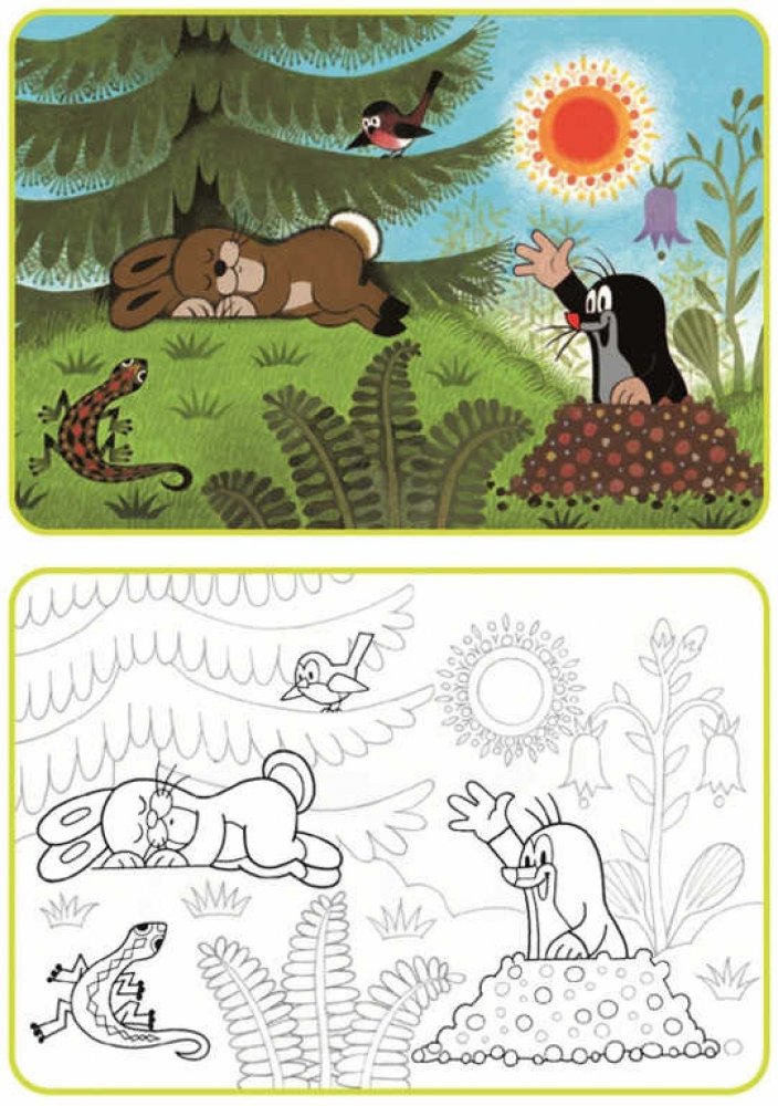 Omalovánky Krtek a zajíček na motivy známého hrdiny animovaného večerníčku Krteček. Krteček baví děti již po více generací a zná ho každý. Ještě nyní se jeho příběhům zasmějí i starší a nejen děti.