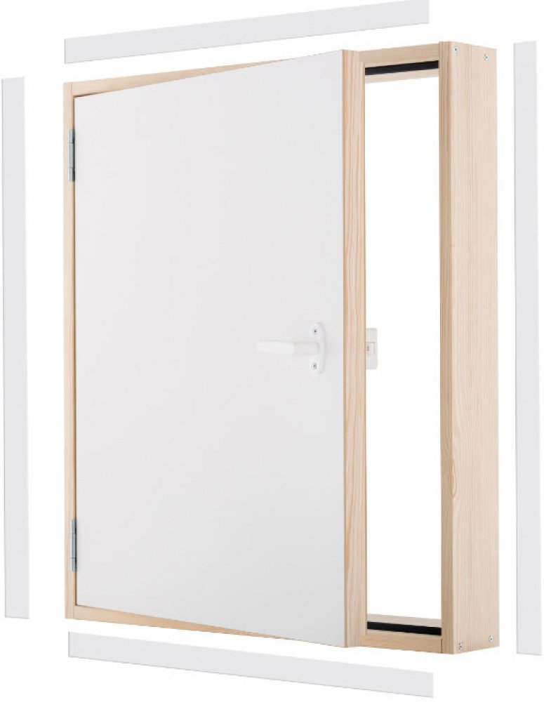 Zateplená podkrovní dvířka DK TERMO umožňují vstup do neobytného podkroví za svislou nadezdívkou. Oboustranně bílé dveřní křídlo s tloušťkou 26 mm vyplněné izolačním materiálem je velmi dobrou bariérou omezující tepelné ztráty (U=1,22 W/m2K). Dvířka lze m Zateplená podkrovní dvířka DK TERMO umožňují vstup do neobytného podkroví za svislou nadezdívkou. Oboustranně bílé dveřní křídlo s tloušťkou 26 mm vyplněné izolačním materiálem je velmi dobrou bariérou omezující tepelné ztráty (U=1,22 W/m2K). Dvířka lze montovat s otevíráním napravo nebo nalevo. Součást balení jsou také krycí lišty.