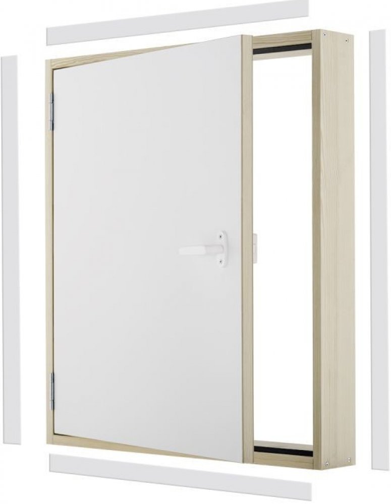 Podkrovní dvířka Oman Termo jsou jednoduchým, a přitom praktickým výlezem do svislých stěn půdních vestaveb. Stěnová dvířka Oman Termo májí zateplené víko o tl. 26 mm, izolováno polystyrénem tl. 20 mm, které je oboustranně potaženo bílou HDF deskou. Otevírají se pomocí kliky. Dvířka Oman májí masivní dřevěný rám o tl. 30 mm a výšce 110 mm. Součástí balení jsou i krycí lišty. Součinitel(koeficient) prostupu tepla je U = 1,22W/m2*K(platí pro U víka).