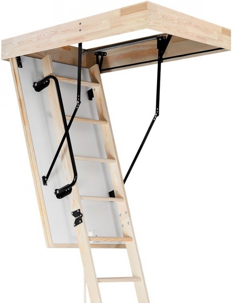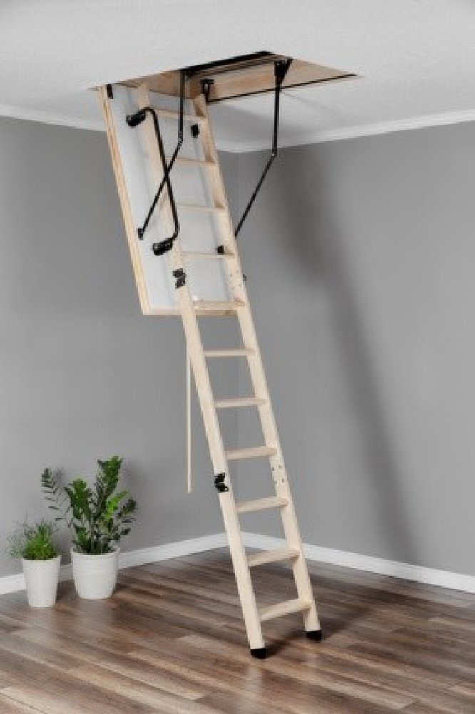 Skládací půdní schody s jednoduchým ovládáním i jednoduchou instalací. Umožňují snadné a bezpečné užívání obytného podkroví bez nutnosti pořízení nákladných a prostorově náročných stacionárních schodů.