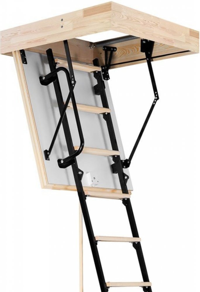 Skládací půdní schody s jednoduchým ovládáním i jednoduchou instalací. Umožňují snadné a bezpečné užívání obytného podkroví bez nutnosti pořízení nákladných a prostorově náročných stacionárních schodů.