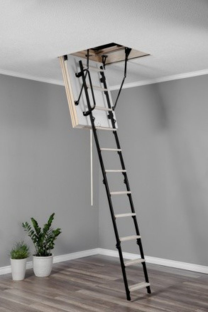 Půdní schody OMAN typu MINI EXTRA jsou čtyřdílné schody s kovovo - dřevěným žebříkem, vyrobené z kvalitního borovicového dřeva se zatepleným poklopem z přírodní dřevotřísky polepené oboustranně deskou HDF v bílé barvě, vybavené dodatečným bezpečnostním kovovým mádlem a umělohmotnými ochrannými patkami. Slouží ke vstupu do půdních, případně podkrovních prostor. Poklop je zajištěn speciálním zámkem ...