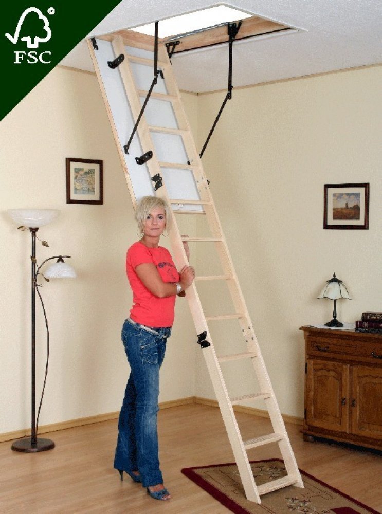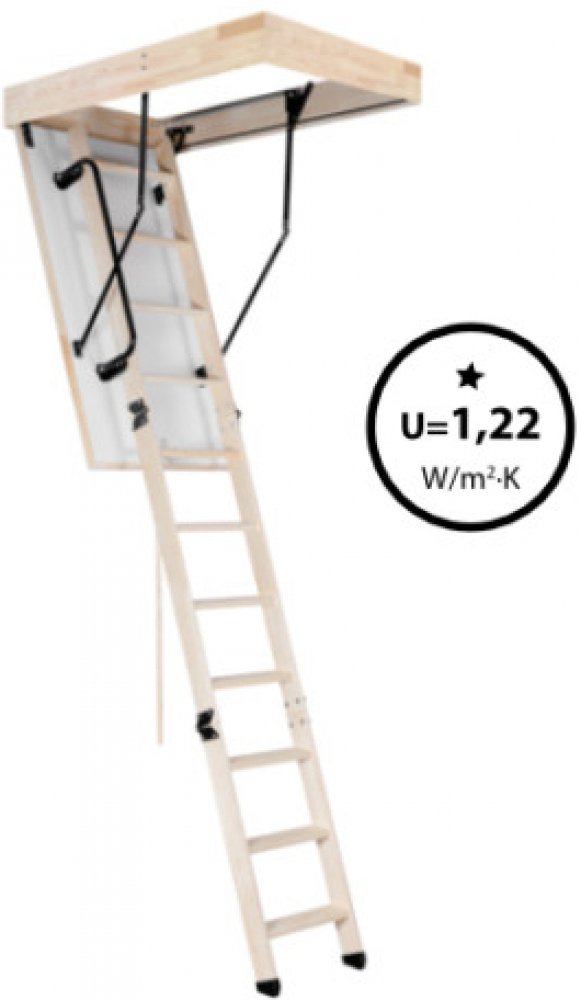 Půdní schody OMAN typu TERMO PS jsou třídílné schody s dřevěným žebříkem, vyrobené z kvalitního borovicového dřeva se zatepleným poklopem z přírodní dřevotřísky polepené oboustranně deskou HDF v bílé barvě, vybavené umělohmotnými ochrannými patkami. Slouží ke vstupu do půdních, případně podkrovních prostor. Poklop je zajištěn speciálním zámkem na klik. Příslušenstvím je dřevěná tyč sloužící pro sn...